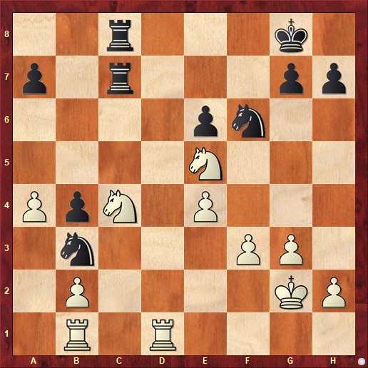 7 тур. Леонова - Полякова. "В сложной стратегической позиции здесь нужно было отдать качество по Петросяну путем Kg6, в партии после Ла7 белые развили решающее давление"