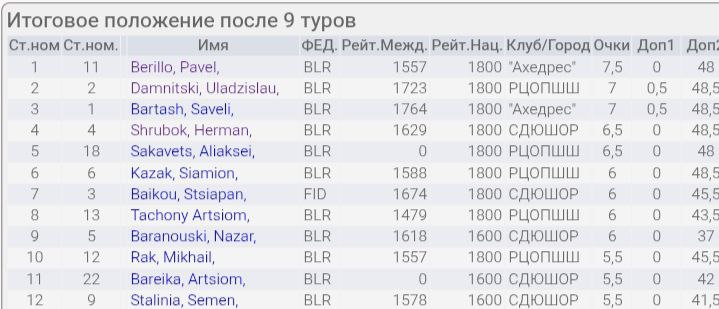 В турнире юношей на первенство страны от СДЮШОР отобрались двое. Чуть не хватило Герману Шрубку, он 4-й. Попал в семерку Степан Бойков. Золото и бронза здесь у представителей школы "Ахедрес" Павла Берилло и Савелия Бартоша (тренер - Е. Ломако), серебро - у Владислава Домницкого из РЦОПШШ (тренер - С. Мерибанов), выступавшего в более старшем для себя возрасте. Полная табличка здесь - https://s1.chess-results.com/tnr1361174.aspx?lan=11&art=1&rd=9&SNode=S0.